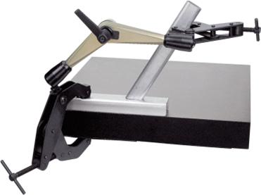 Med 370 mm armlengde og totalvekt på 3 kg gir den sikker støtte for måleinstrumenter på målebord. Den kan leveres med forlenger for større arbeidsområde, og har høy repeterbarhet takket være den presise spennmekanikken.