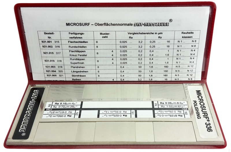 Rubert-ruhetsnormaler er produsert i høykvalitets metall med standardiserte etse- og poleringsgrader. Dette sikrer lang levetid, stabil nøyaktighet og pålitelige resultater i henhold til ISO 4288, ISO 8503 og VDI 3400.