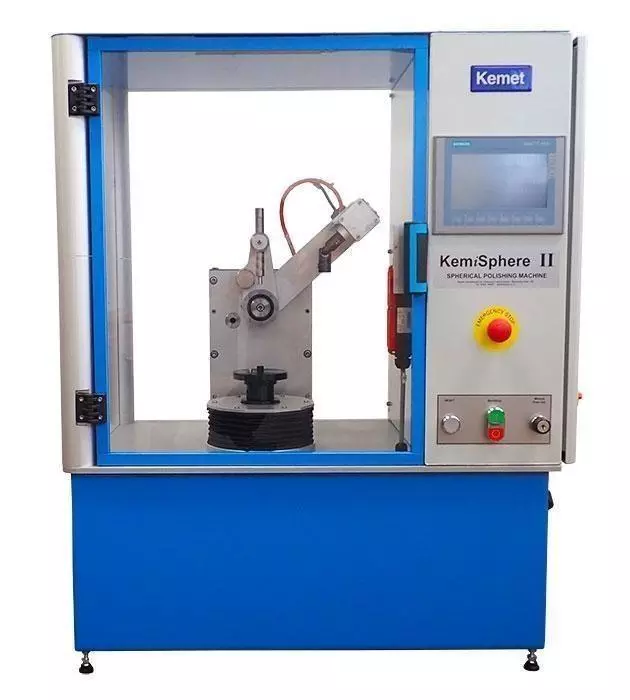 For mer fleksible bruksområder har Kemet utviklet KemiSphere II, en kompakt og brukervennlig maskin for sfærisk lapping. Denne enkeltstasjonsmaskinen gir repeterbare prosesser med en overlegen overflatefinish og kan bearbeide komponenter med en diameter på opptil 100 mm. Utstyrt med Siemens PLC, HMI, uavhengige motorer og trykkpåføringssystem, muliggjør den en fullstendig programmerbar og dokumenterbar prosess for optimal kvalitet.