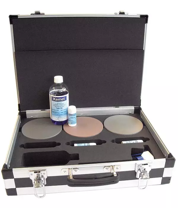 Bærbare håndlappesett for sliping og polering (Type L, P og SP) – Inneholder en 348 mm lappeplate, diamantpasta og smørevæske. Leveres i solid aluminiumsboks.